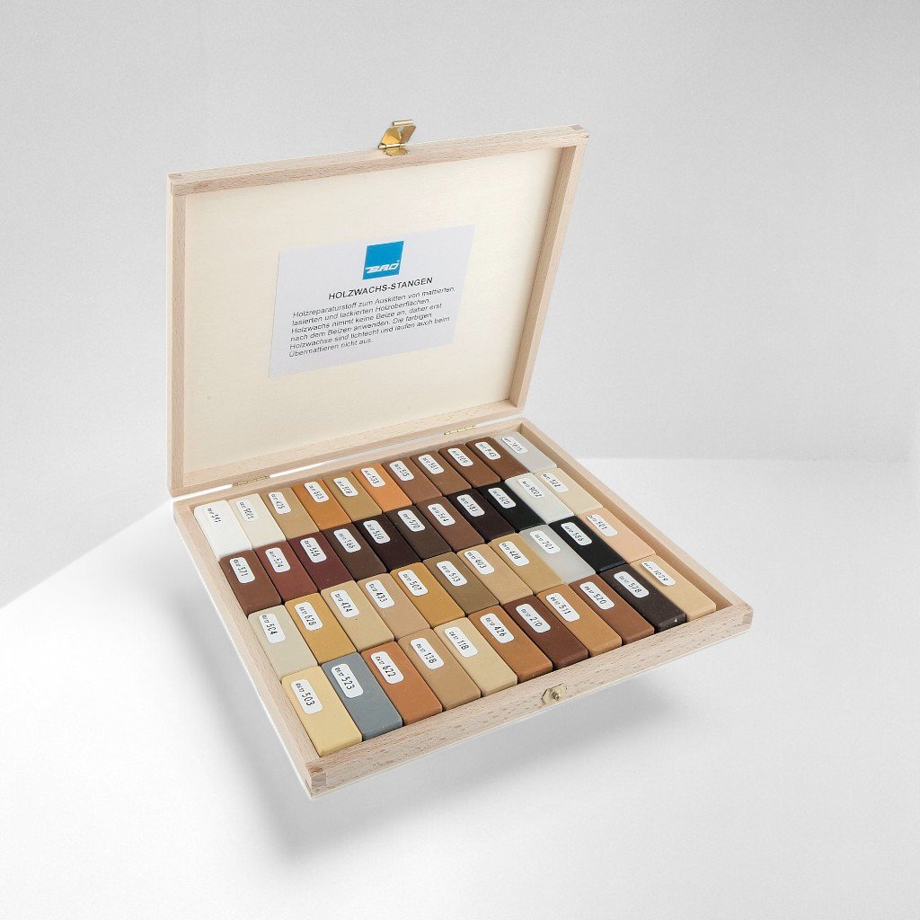 Súprava mäkkých voskových tyčiniek BAO obsahuje 44 rôznych odtieňov, pripravených na okamžité použitie pre rýchle opravy drevených a plastových povrchov. Tieto voskové tmely sú ideálne na vyplnenie poškodení v plochách mimo oblastí mechanického namáhania. BAO 100 je svetlostály, neprepadáva sa a možno ho prekryť nitrolakom. Konečná úprava inými lakovými systémami, vrátane vodou riediteľných lakov, je možná; pre overenie kompatibility odporúčame vykonať skúšobný nástrek.