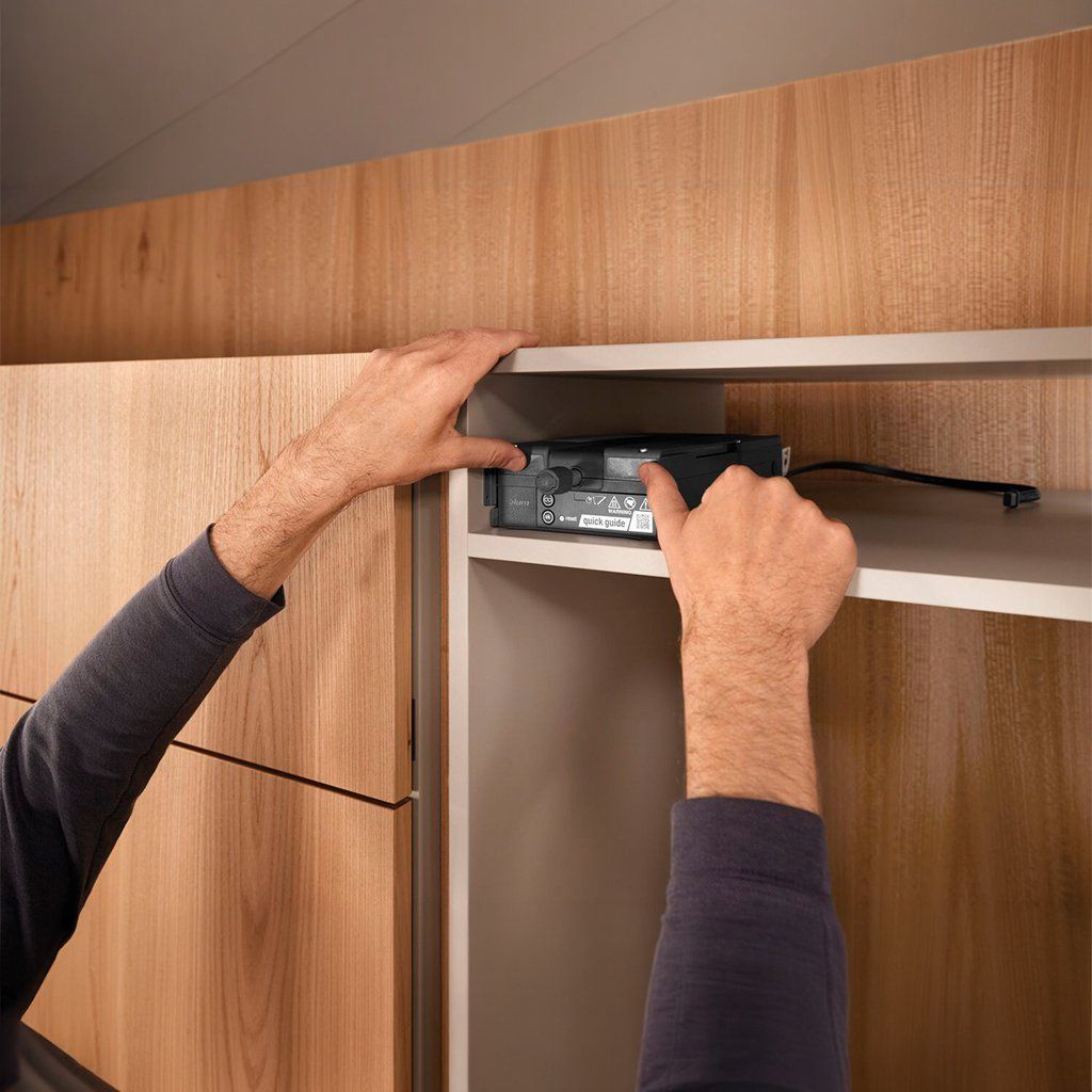 BLUM SERVO-DRIVE flex Z10C500A.01 je elektrická pohonná jednotka určená pre bezúchytkové otváranie vstavaných kuchynských spotrebičov. Po jemnom zatlačení na čelo nábytku sa aktivuje mechanizmus, ktorý automaticky pootvorí dvierka spotrebiča a umožní ich pohodlné otvorenie.