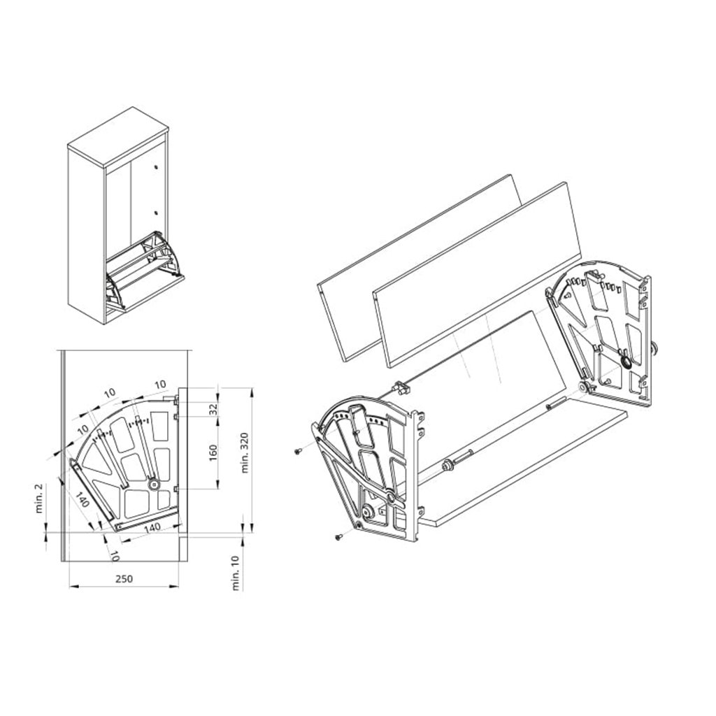 - Vyhotovenie: výklopné police na obuv