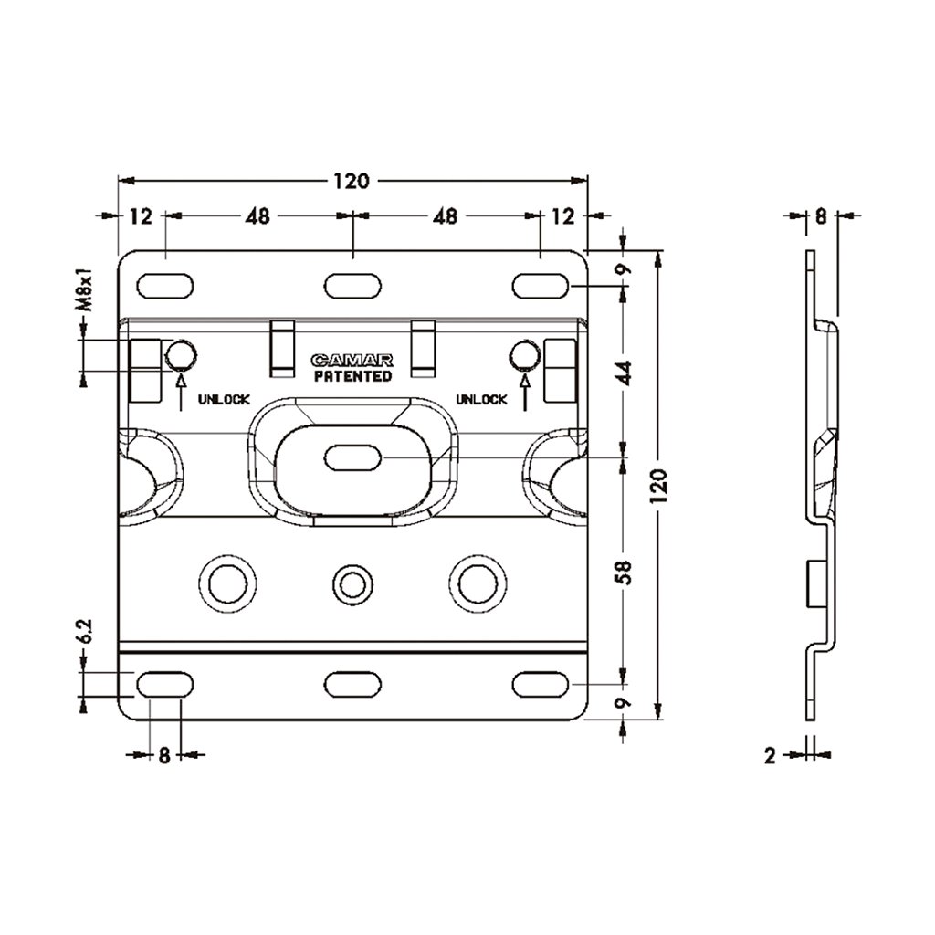 CAMAR - nosná platnička pre záves spodnej skrinky 807RV, oceľ pozinkovaná