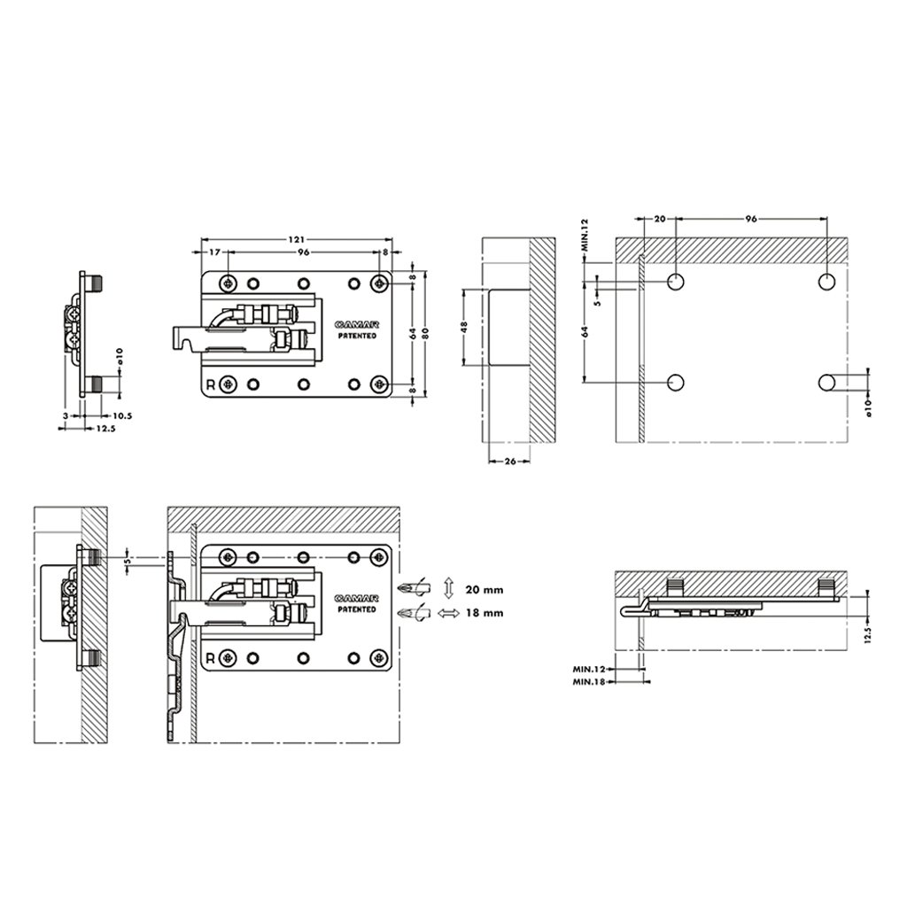 CAMAR - záves spodnej skrinky 807XL, pravý, oceľ pozinkovaná