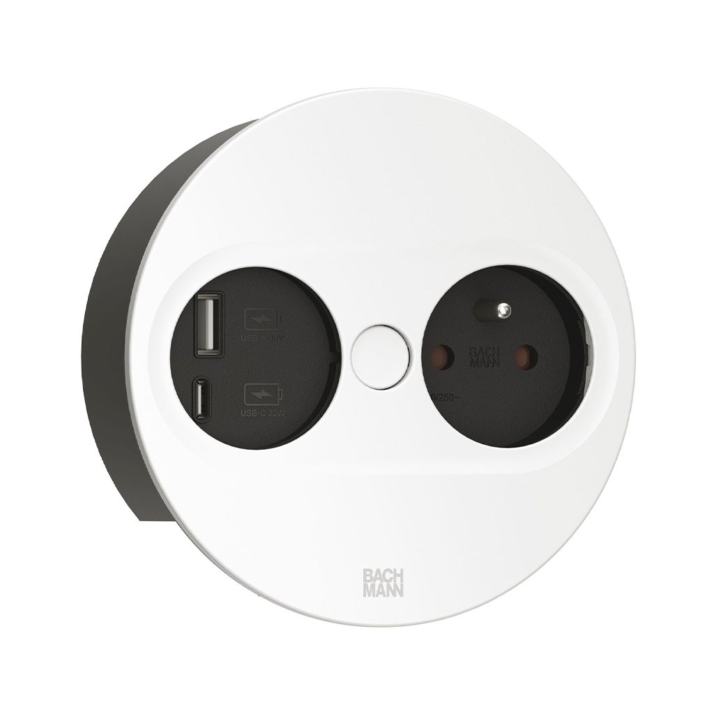 Zásuvkový systém BACHMANN TWIST 2 spája moderný dizajn s praktickosťou. Je ideálny pre všetkých, ktorí hľadajú elegantné a nenápadné riešenie napájania pre kuchyňu, pracovný priestor alebo domácu kanceláriu.