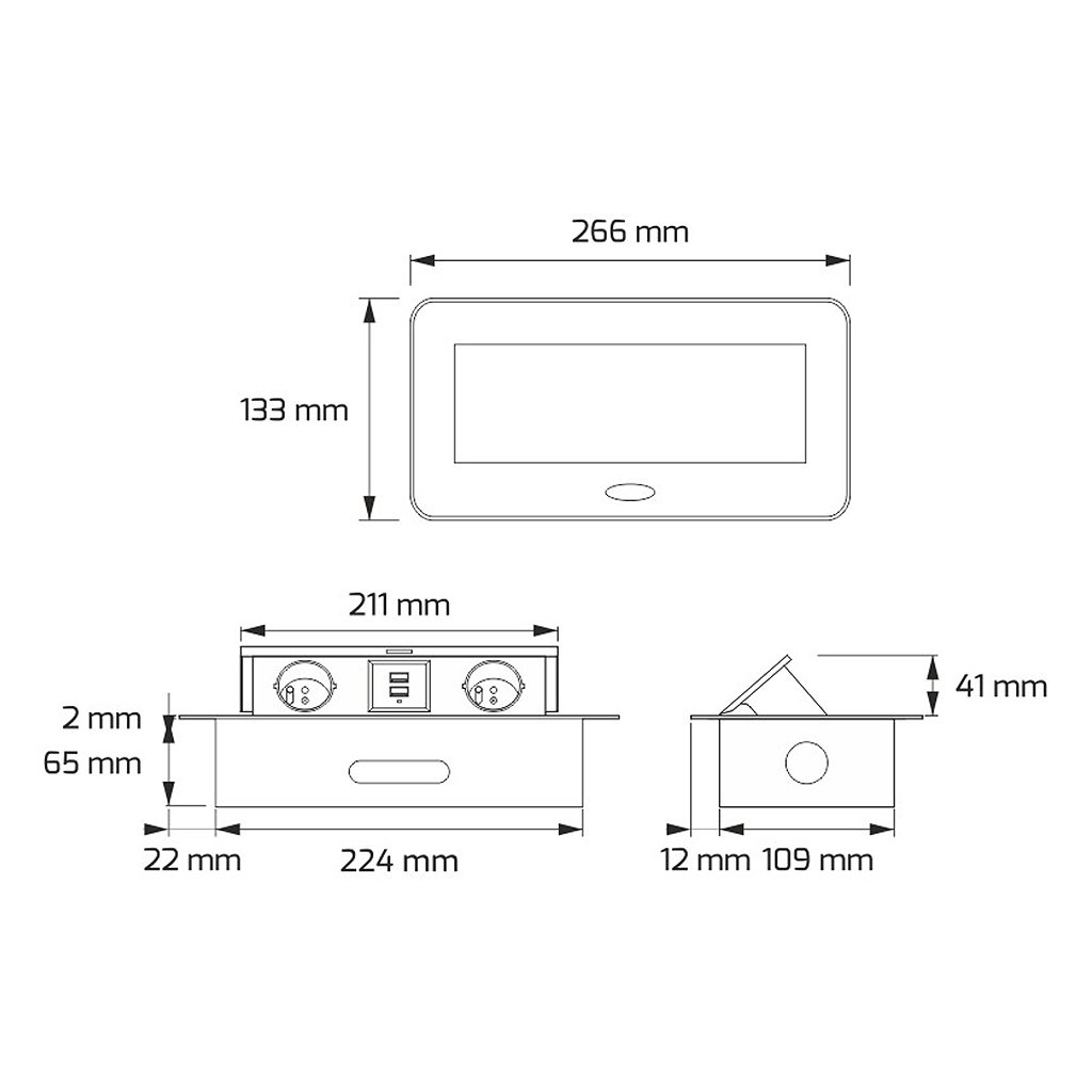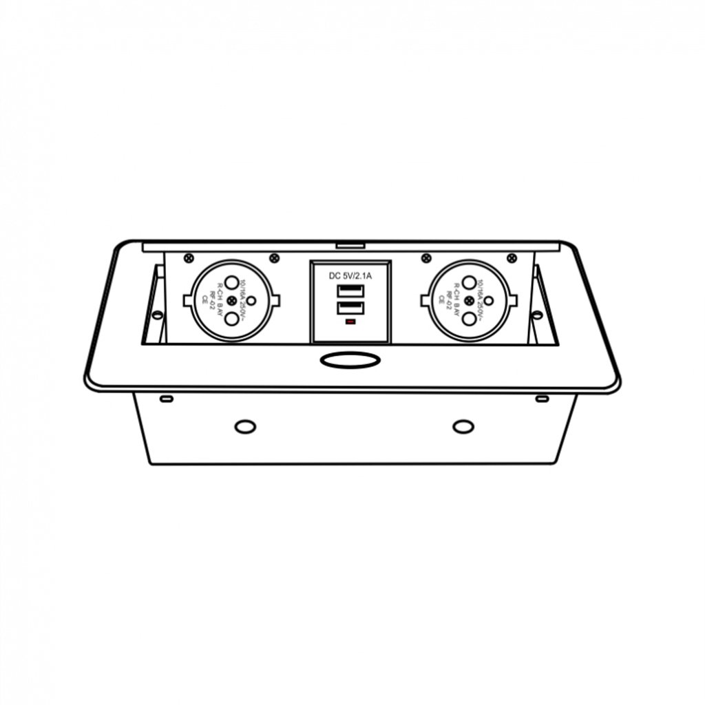 DESIGN LIGHT KOMBI BOX nábytková zásuvka ideálna pre inštaláciu do kuchyne alebo kancelárie. Zariadenie má dve sieťové zásuvky a dva vstupy USB a kábel s dĺžkou 3 m.