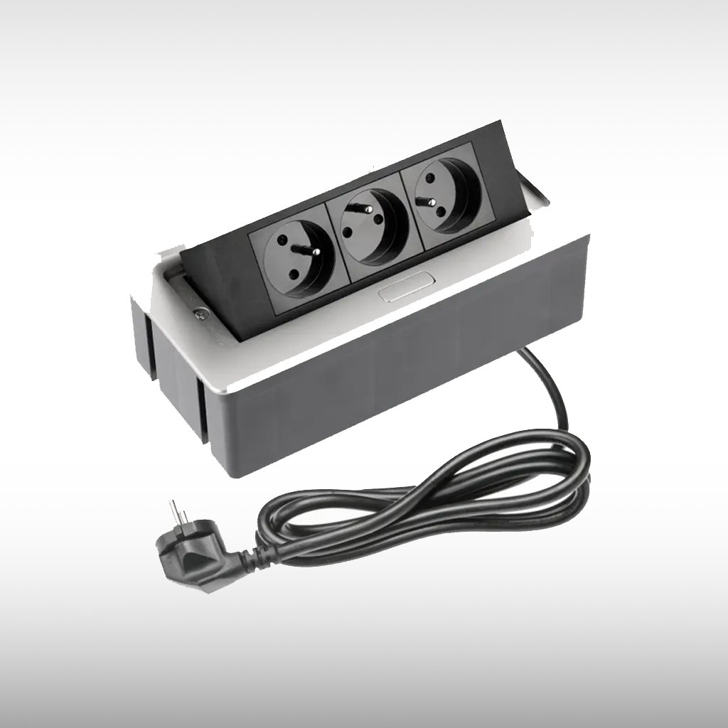 Zásuvka je vybavená tromi zásuvkami 230 V a napájacím káblom s dĺžkou 1,5 metra, ktorý umožňuje flexibilné pripojenie a zároveň udržiava poriadok v priestore. Saténová povrchová úprava dodáva zásuvke moderný vzhľad a príjemný dotyk. Inštalácia je rýchla a nenáročná.