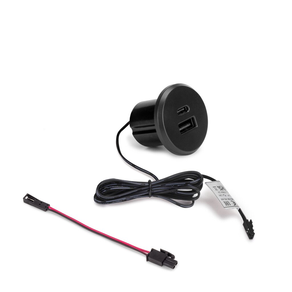 Elektrická záuvka - Nabíjacia jednotka gulatá, USB A+C, Čierna