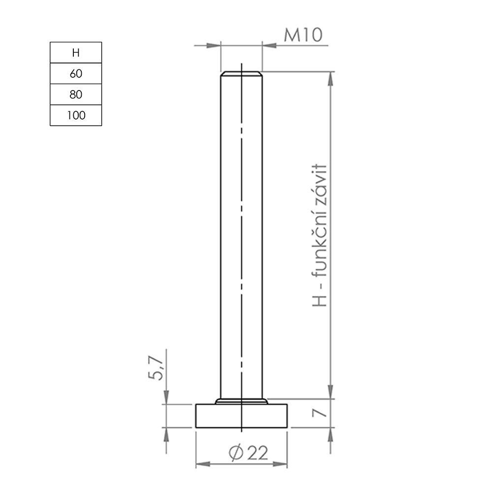 HardLegs - Nastavovacia noha - skrutka H80 mm, M10