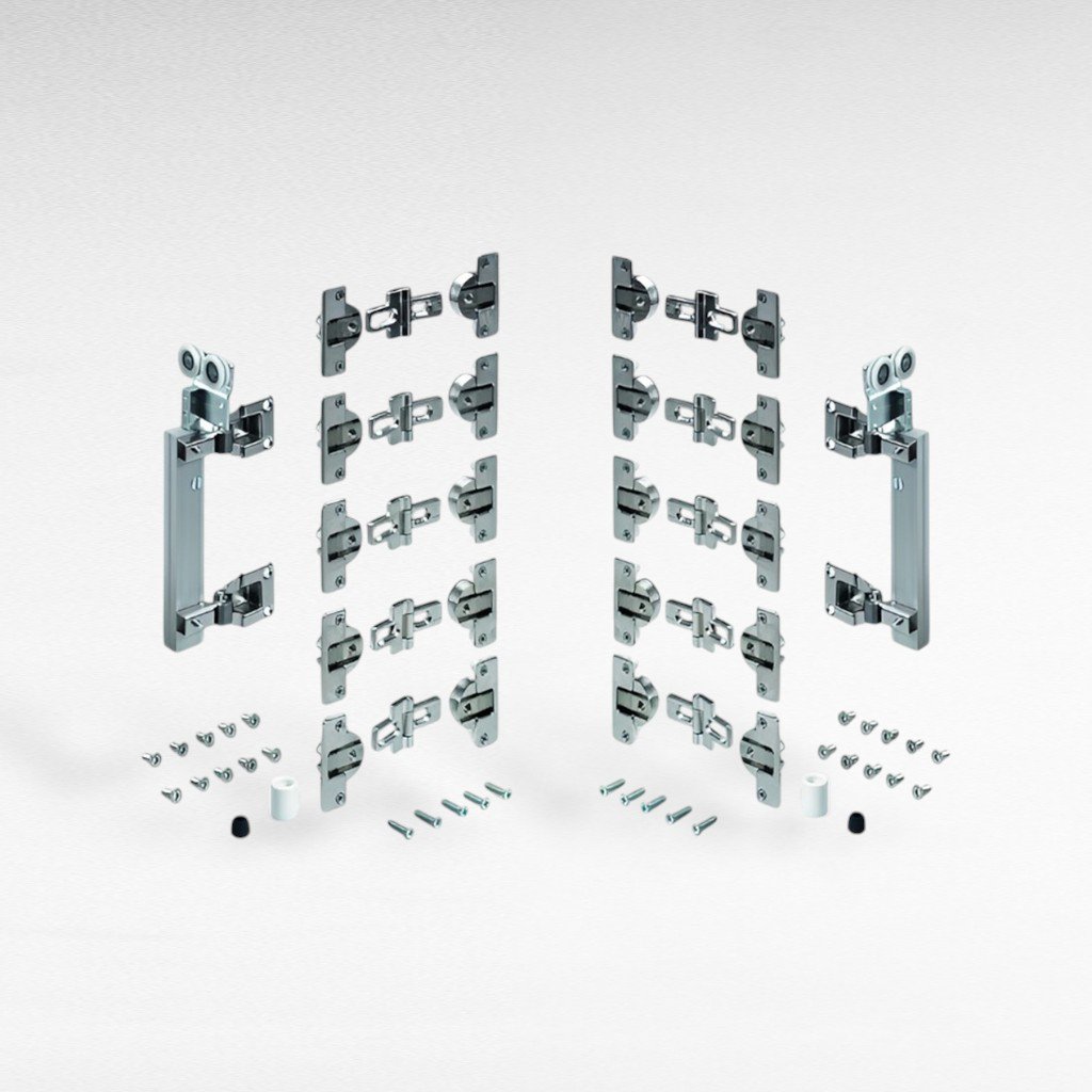 - Flexibilné použitie: Pre dve skladacie dvere, každé s dvoma krídlami.