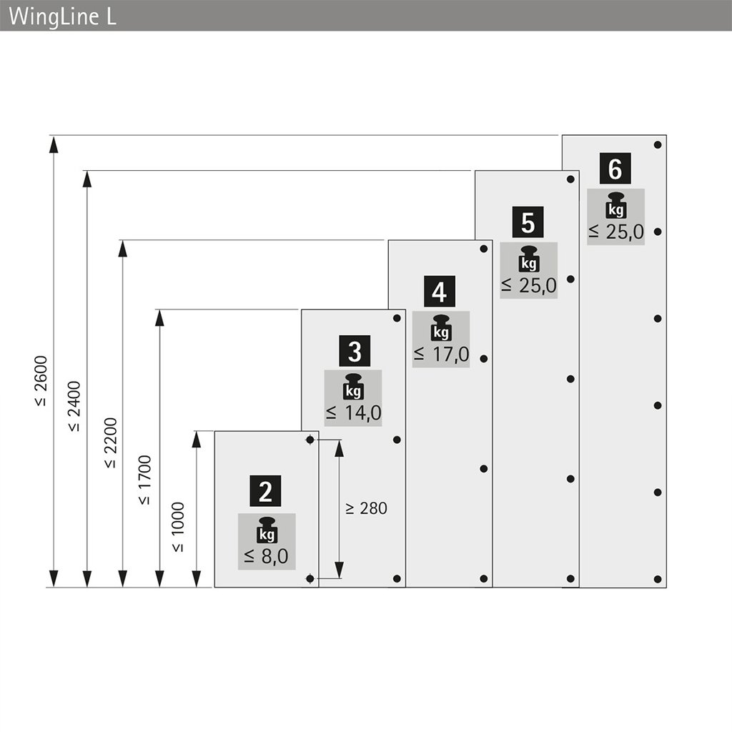 Kvalitné spracovanie zaručuje stabilitu, dlhú životnosť a plynulý chod dverovej zostavy. Biele prevedenie je neutrálne a vhodné pre väčšinu moderných nábytkových systémov WingLine L.