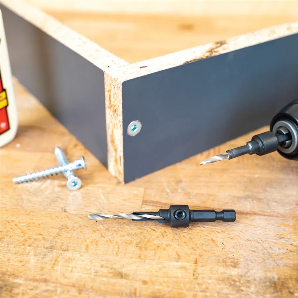 Špeciálny vrták určený na predvŕtanie otvorov pre spojovacie skrutky typu konfirmat. Vrták je vyrobený z kvalitnej rýchloreznej ocele (HSS) a vďaka svojmu postupne stúpajúcemu vinutiu a integrovanému zahlbeniu zabezpečuje čisté a presné predvŕtanie vrátane priestoru pre hlavu skrutky.