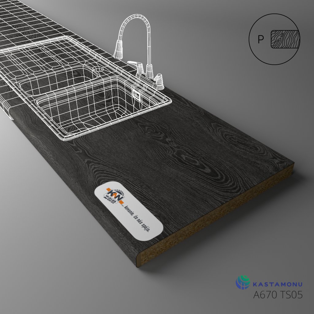 KASTAMONU - Pracovná doska TECHNOTOP - A670 TS05 - 4100 x 900 x 38 - Obsidian Oak