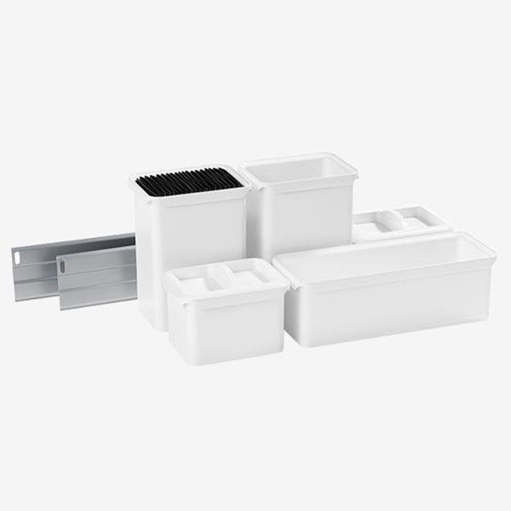 Kontajnery YouboXx sú súpravou kontajnerov pre Junior pod pultovými systémami. Sada YouboXx sada 1 v spojení s ďalšou sadou z rovnakej série, napr. Sada YouboXx set 3 vám umožňuje nezávisle nastaviť systém Junior podľa vašich potrieb a preferencií. Kontajnery so špeciálnou upevňovacou lištou sú zavesené na systémovom ráme. V tejto sade nádob máme dve 1 litrové nádoby s vekom, dve 2 litrové nádoby, 2,1 litrová nádoba, vložka na nôž.