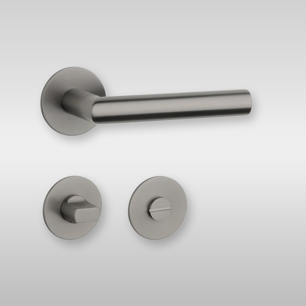Kľučka je vyrobená z kvalitnej nehrdzavejúcej ocele s odolnou matnou grafitovou povrchovou úpravou, ktorá zabezpečuje dlhú životnosť, vysokú odolnosť voči opotrebeniu a jednoduchú údržbu. Okrúhla rozeta s hrúbkou iba 3 mm pôsobí veľmi subtílne a dodáva dverám elegantný, moderný vzhľad.