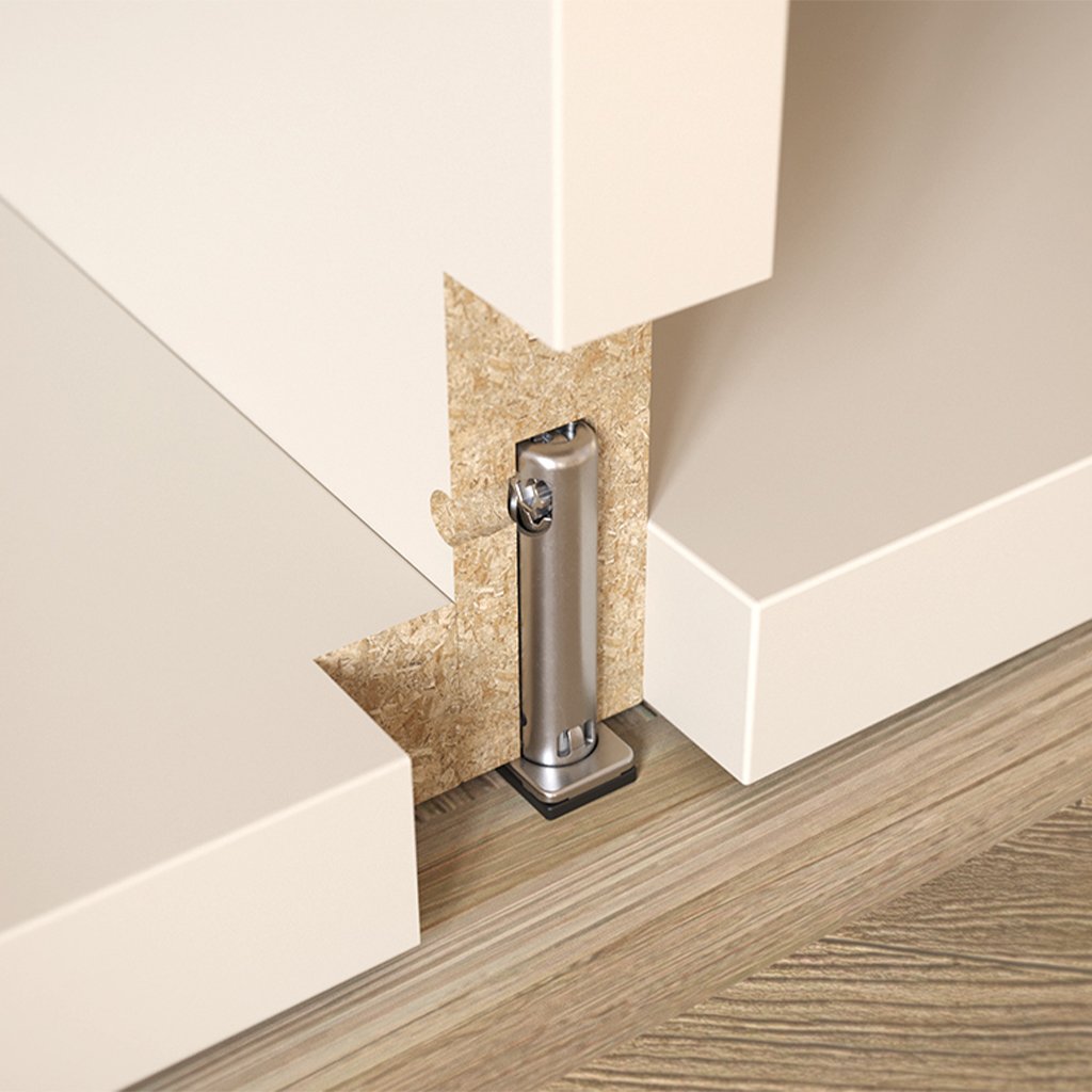 Nastavovacia noha Rekord je múdre riešenie pre stabilné a nenápadné podopretie skriniek, stolíkov alebo iného nábytku. Vďaka svojmu dizajnu je kompletne ukrytá v boku nábytku, čím neruší celkový vzhľad ani dekor.