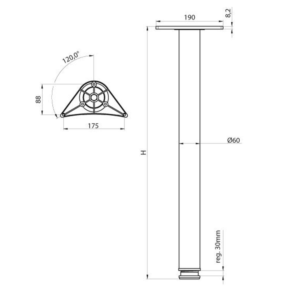 Stolová noha DN-252 s výškou 1100 mm predstavuje ideálne riešenie pre výrobu barových, vysokých jedálenských alebo pracovných stolov. Robustná konštrukcia zaručuje stabilitu a dlhú životnosť, pričom jej jednoduchý a univerzálny dizajn umožňuje široké využitie.