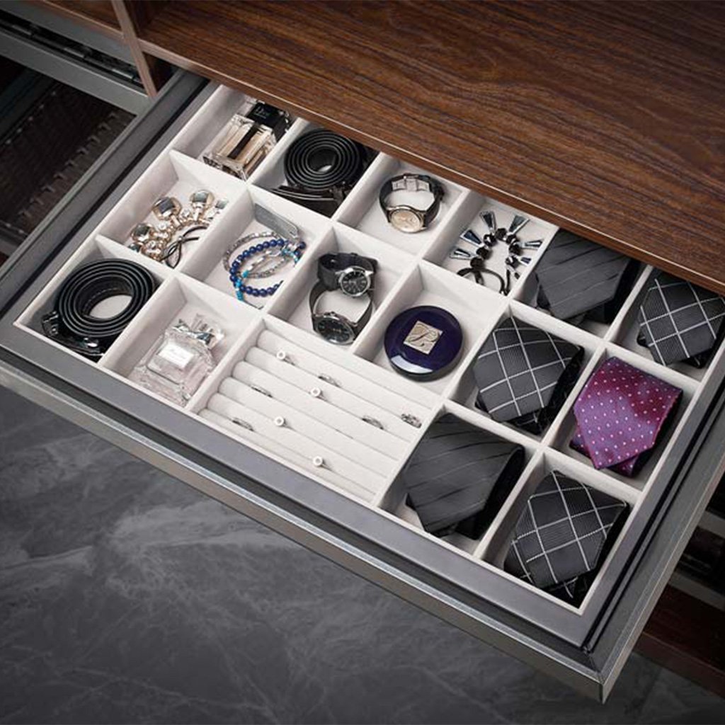Organizér na doplnky SYMPHONY WB-665 ponúka nielen praktické usporiadanie, ale aj ochranu pre vaše cennosti. Je navrhnutý tak, aby sa hodil do šatníkových skríň rôznych veľkostí vďaka nastaviteľnej šírke rámu. Okrem toho sa jeho vysúvací mechanizmus s tichým dovieraním postará o bezproblémový prístup ku všetkým uloženým predmetom.