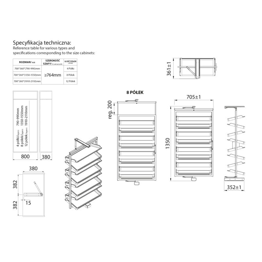 - Otočenie police o 360°: Umožňuje ľahký prístup ku každej poličke, čo výrazne zvyšuje komfort pri používaní.