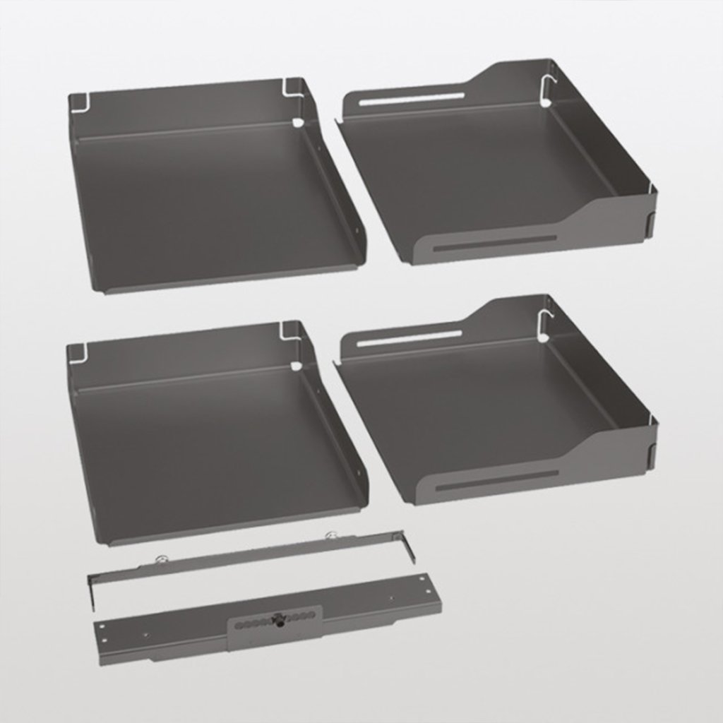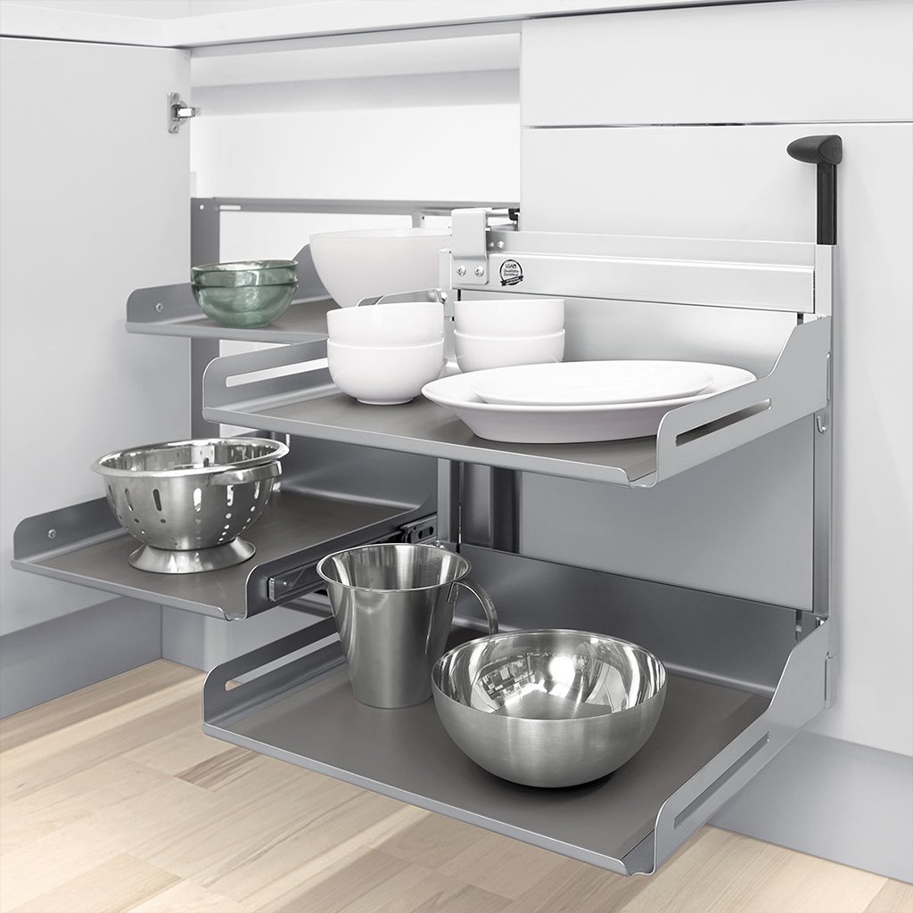 Sada závesných políc PEKA Magic Corner Comfort Libell je ideálne riešenie na rozšírenie a organizáciu úložného priestoru v rohovej skrinke. Tenkostenné, no vysoko stabilné kovové police v elegantnej farbe antracit umožňujú maximálne využitie priestoru a pohodlný prístup k uloženým veciam.