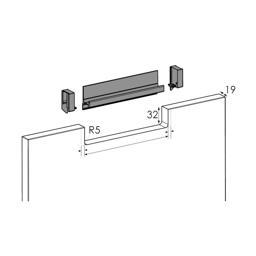 Koncovka RINCOMATIC SYMA 32 plne integrovaná v zlatej matnej farbe je špičkovým riešením pre ukončenie profilov v modernom nábytkovom dizajne.