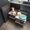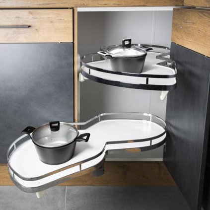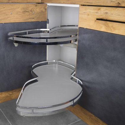 Rohové koše do kuchyne sú praktické úložné systémy navrhnuté pre efektívne využitie rohového priestoru v kuchynských skrinkách. Tieto koše využívajú špeciálne mechanizmy, ako je LeMans alebo Magic Corner, ktoré umožňujú plynulé vysúvanie a jednoduchý prístup k uloženým predmetom, ako sú hrnce, panvice či iné kuchynské potreby. Vďaka týmto mechanizmom sa aj hlboko uložené predmety dajú ľahko dosiahnuť. Rohové koše sú robustné a odolné, navrhnuté pre vysokú nosnosť, pričom ich tichý chod a kvalitné materiály zaručujú dlhodobé a komfortné používanie. Sú dostupné v rôznych veľkostiach a štýloch, ktoré sa hodia do moderných aj klasických kuchýň, pričom optimalizujú úložný priestor a zvyšujú praktickosť kuchyne.