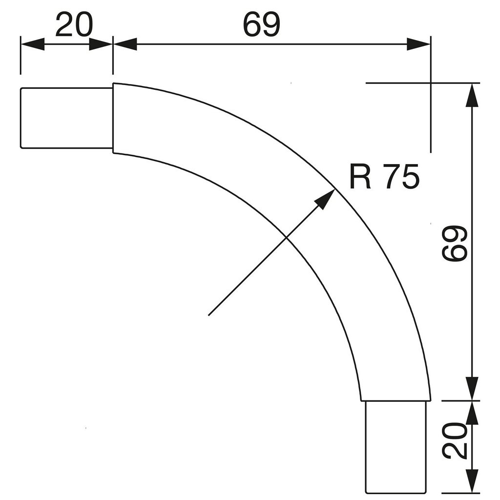 Rohový element k vešiakovej tyči 30 x 15 mm, oblúkové koleno 90°