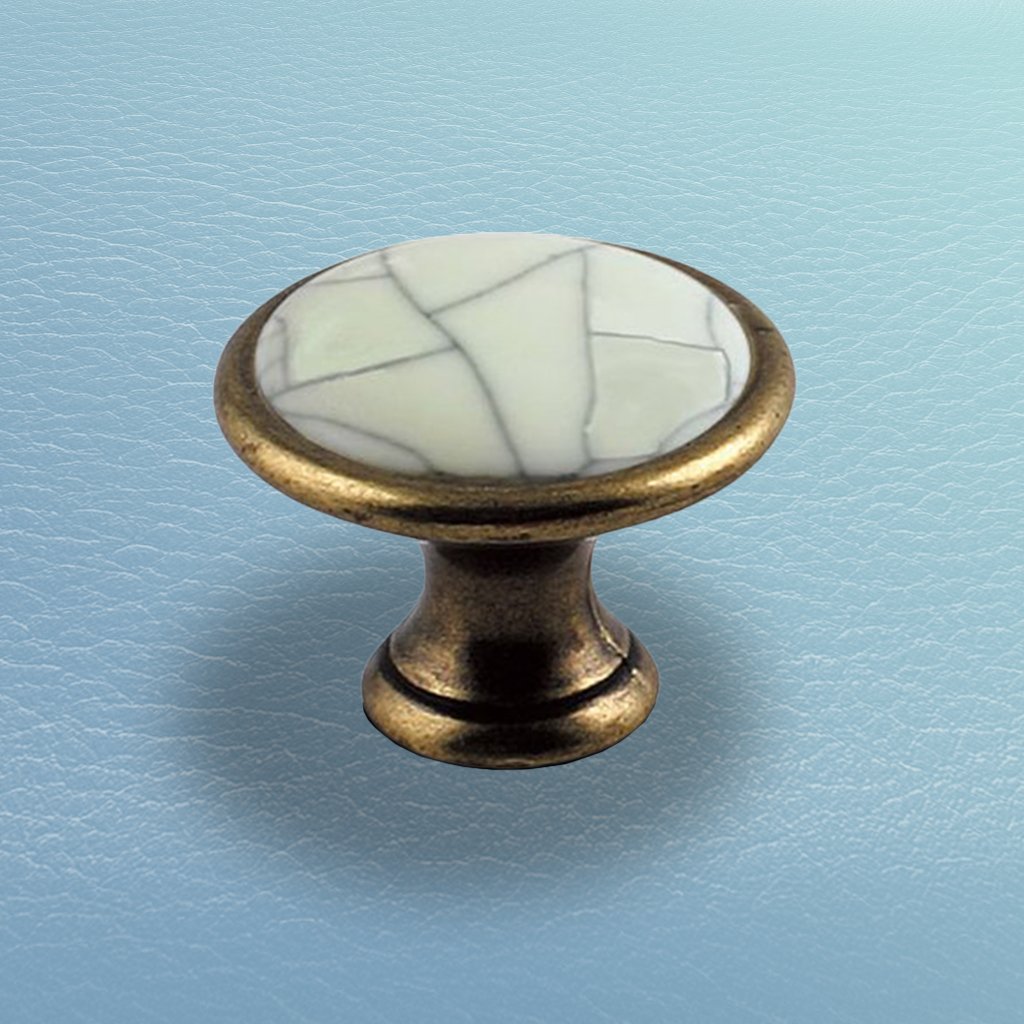 Rustikálna knopka SIRO kombinuje kov a keramiku v elegantnom tradičnom prevedení. Kovová základňa v povrchovej úprave starostriebro s jemnou patinou vytvára autentický starožitný vzhľad. Horná časť je doplnená keramickým prvkom s jemným popraskaným glazúrovaným efektom, ktorý dodáva knopke jedinečný dekoratívny charakter.