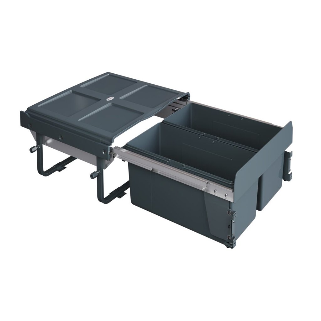 Robustná konštrukcia z ocele a kvalitného plastu s antracitovou povrchovou úpravou zaisťuje dlhú životnosť, jednoduchú údržbu a moderný vzhľad. Výsuvný mechanizmus na kovových koľajničkách poskytuje plynulý a tichý chod bez zadrhávania. Kôš je možné jednoducho namontovať na dno skrinky a vďaka priloženému setu na uchytenie dvierok sa pri otvorení automaticky vysúva.