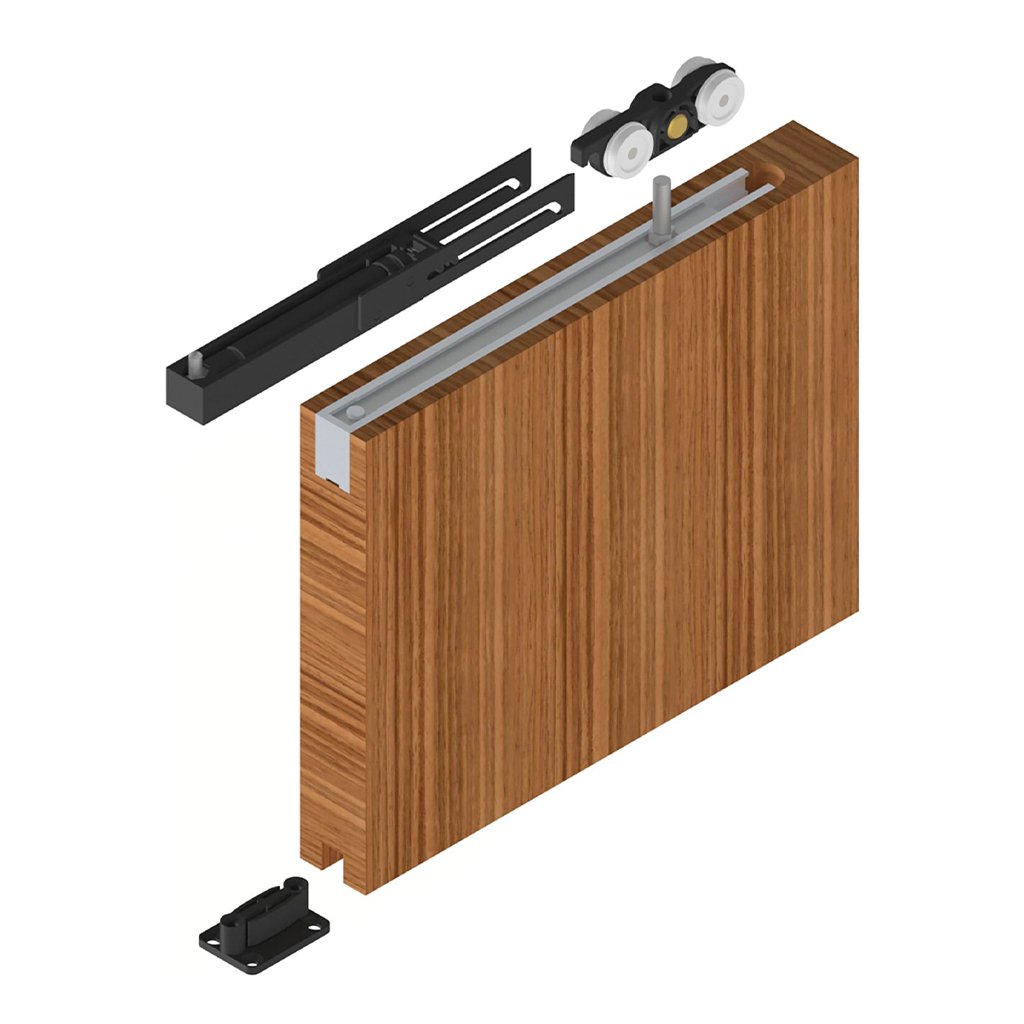 Kovanie Solido 100 je určené pre posuvné drevené dvere s minimálnou montážnou výškou. Obsahuje tlmiče doťahu na oboch stranách pre tichý a kontrolovaný chod. Vhodné na montáž na stenu aj na strop, bez potreby jazdnej koľajnice v balení.