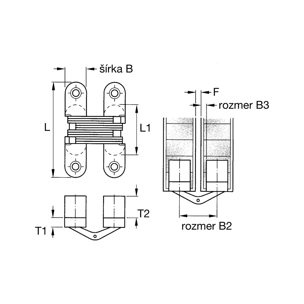Soss skrytý záves na zafrézovanie, 60x13 mm, 180°, poniklovaný