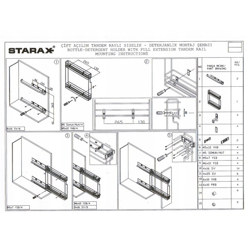 Praktický STARAX výsuvný drôtený kôš s dvoma policami je ideálnym riešením pre organizáciu kuchynského priestoru. Vhodný na uloženie fľašiek, saponátov alebo iných drobných predmetov, poskytuje stabilitu vďaka plným dnám na oboch policiach. Kôš sa vysúva spolu s čelom, čo umožňuje pohodlný prístup k obsahu skrinky, zatiaľ čo plnovýsuv Tandem od BLUM s tlmeným dovieraním zaručuje hladký a tichý chod.