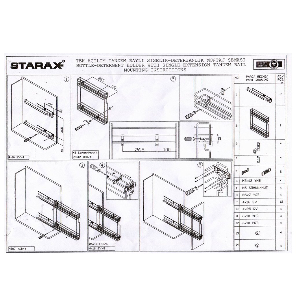 Výsuvný drôtený kôš STARAX s dvoma policami je ideálnym riešením pre úložný priestor v kuchyni. Navrhnutý pre pohodlné uloženie fľašiek, saponátov či drobností, tento kôš sa vysúva spolu s čelom skrinky, čo zaručuje jednoduchý prístup k uloženým predmetom. Výsuvný systém Tandem od BLUM s tlmeným dovieraním zabezpečuje hladký a tichý pohyb, ideálny pre každodenné použitie.