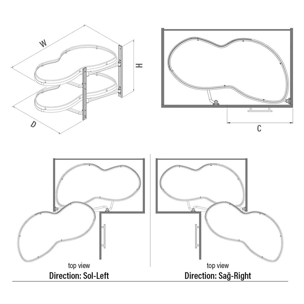 Tento rohový policový systém SECRET je ideálnym riešením pre lepšiu organizáciu a jednoduchý prístup k uloženým veciam v ťažko dostupných rohoch kuchynskej linky.