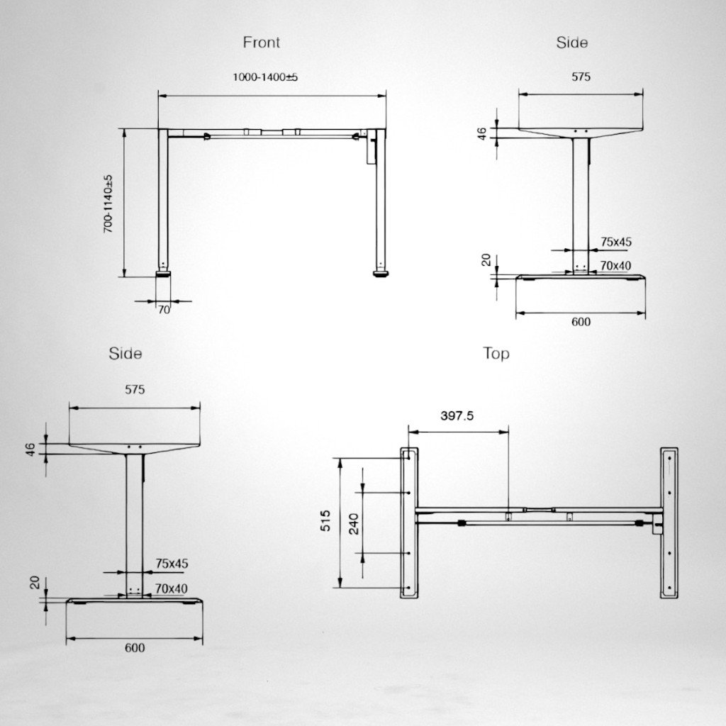 - Elektricky nastaviteľná výška: Vďaka 1 motoru BOSCH a 2-segmentovému pohonu môžete jednoducho nastaviť výšku stola od 700 mm do 1140 mm, čo poskytuje pohodlie pri práci v rôznych polohách.