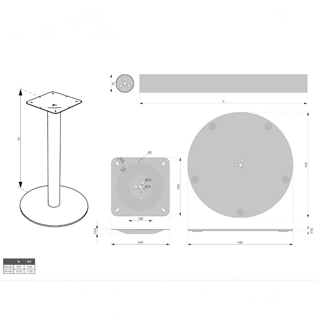 Stolová podnož - DN-451, okrúhla, inox, 730 mm