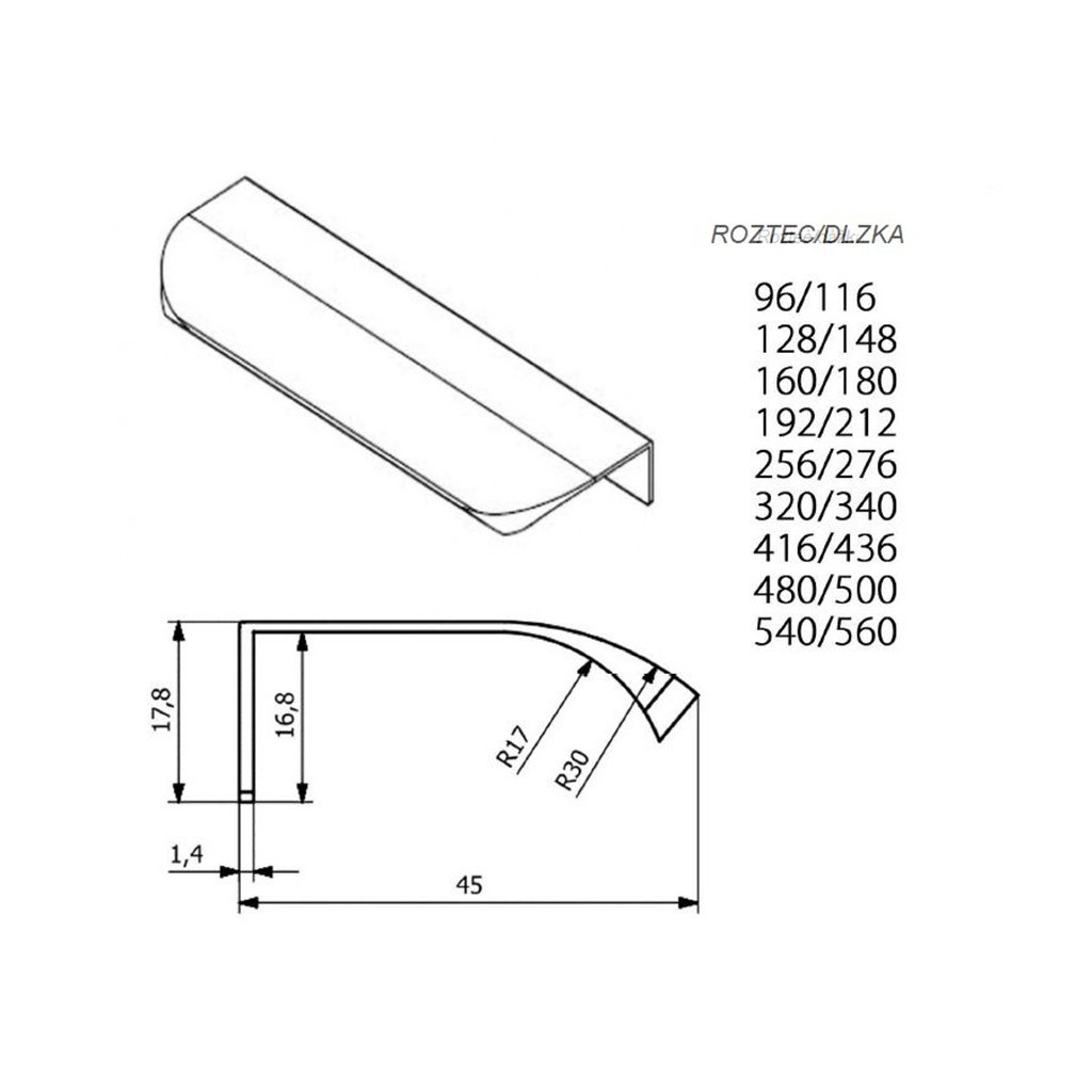 UA02 – Nábytková úchytka