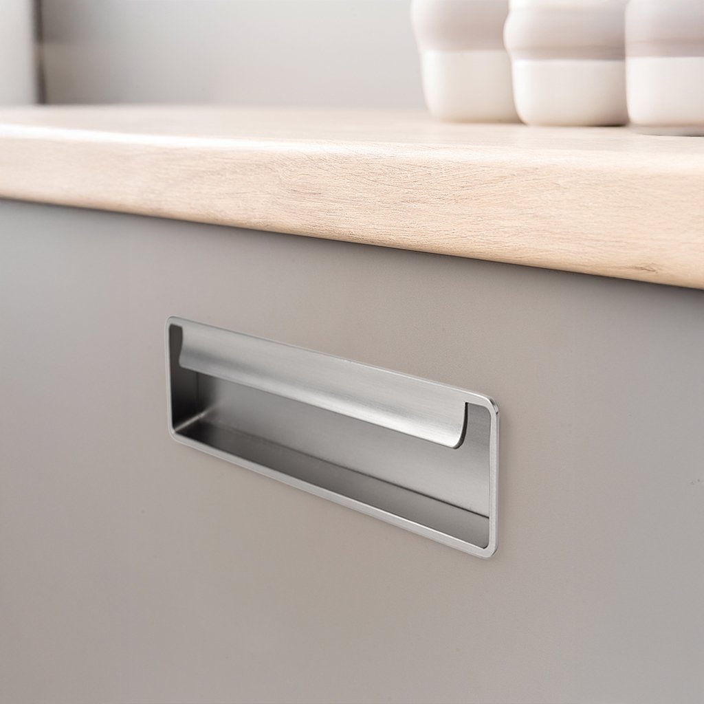 Úchytka Viefe FOLD je výnimočná svojím minimalistickým a moderným vzhľadom. Charakteristický “fold” ohyb vytvára unikátny dizajnový detail, ktorý ju odlišuje od ostatných vstavaných úchytiek. Tento sofistikovaný prvok bol navrhnutý dizajnérskym štúdiom Teruel & Paré, ktoré sa zameriava na harmonické spojenie jednoduchosti a funkčnosti.