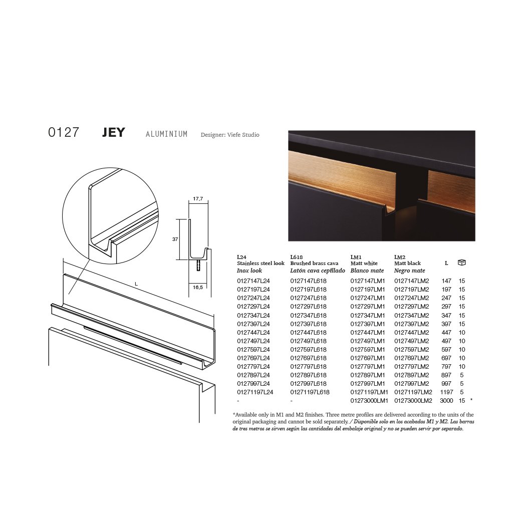 Vyrobená z odolného hliníkového profilu, ktorý je príjemný na dotyk, dopĺňa všetky typy dreveného nábytku, laminátu, lakovaného či dyhovaného povrchu. Elegantne viditeľná zadná časť úchytky podčiarkuje čisté línie a moderný vzhľad nábytku.