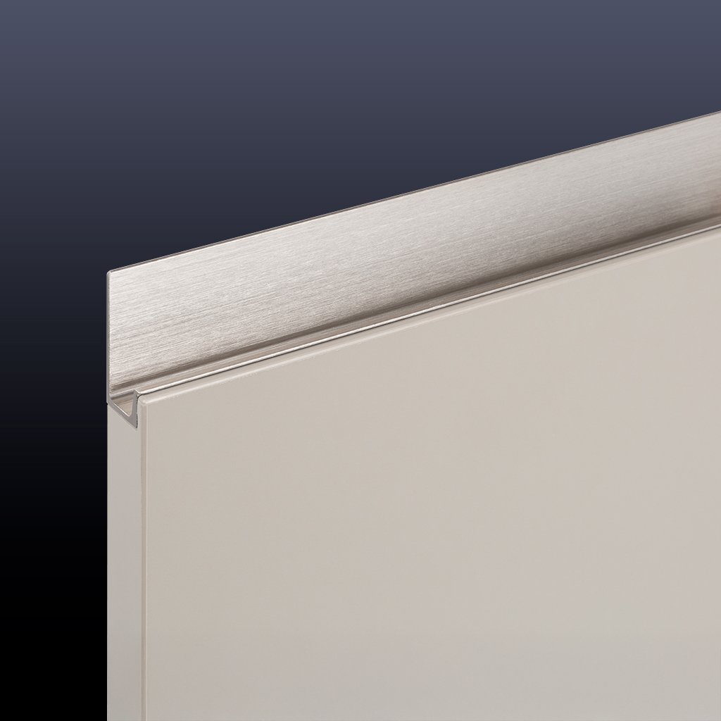 Úchytka Viefe JEY v modernom prevedení nerezového efektu je perfektnou voľbou pre milovníkov minimalistického dizajnu. Tento nadčasový úchytkový profil je určený pre dvierka a zásuvky s hrúbkou od 18 mm, kde zabezpečí nielen praktickú funkciu, ale aj estetický prvok.