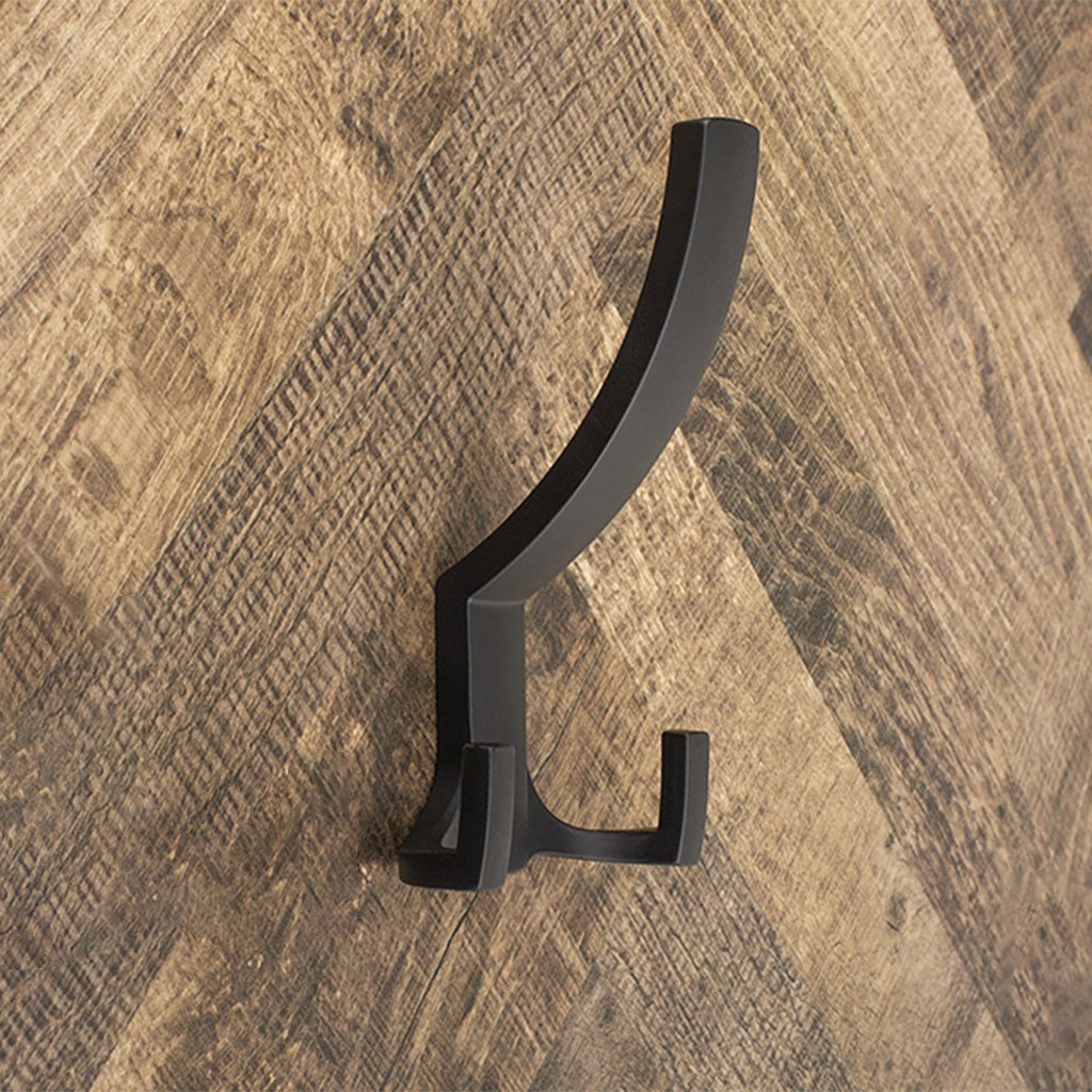 Vešiak CID XL v matnej čiernej farbe ponúka štýlový a praktický doplnok do vášho interiéru. Ideálny pre vešiakové steny v predsieňach, jeho jednoduchý dizajn dokonale ladí s rôznymi štýlmi nábytku – moderným aj klasickým. Tento vešiak umožňuje pohodlné zavesenie až troch kusov oblečenia vďaka dvom háčikom. Robustná konštrukcia a minimalistický vzhľad z neho robia univerzálnu voľbu pre každú domácnosť. Skvelá voľba pre funkčnosť a elegantný vzhľad vášho interiéru.