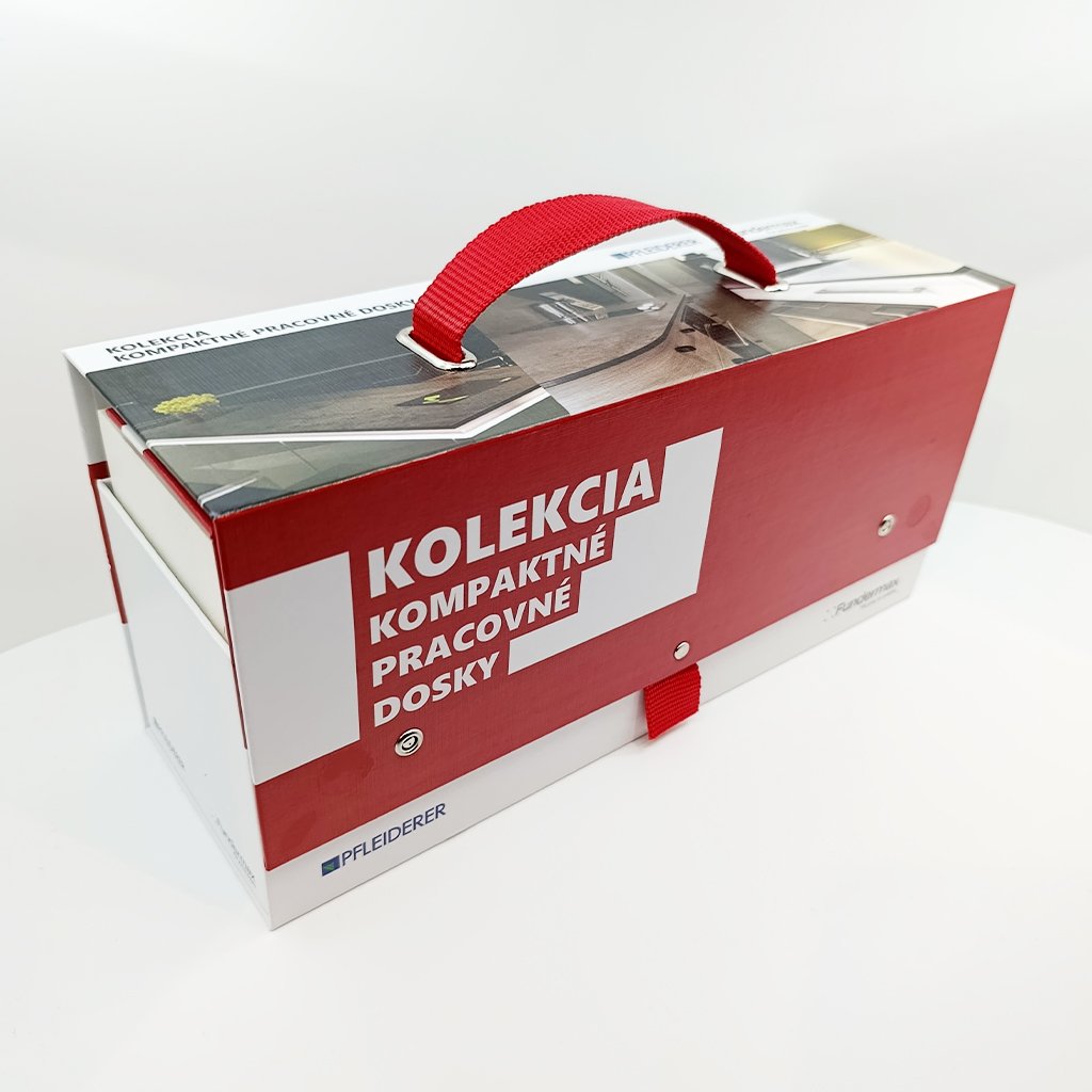 Profesionálny vzorkovník Pfleiderer v praktickej krabici ponúka kompletný prehľad kompaktných pracovných dosiek pre roky 2025–2028. Tento vzorkovník je neoceniteľným pomocníkom pre dizajnérov, architektov, stolárov a výrobcov nábytku, ktorí chcú svojim klientom predstaviť aktuálne dekory, štruktúry a povrchové úpravy značky Pfleiderer.
