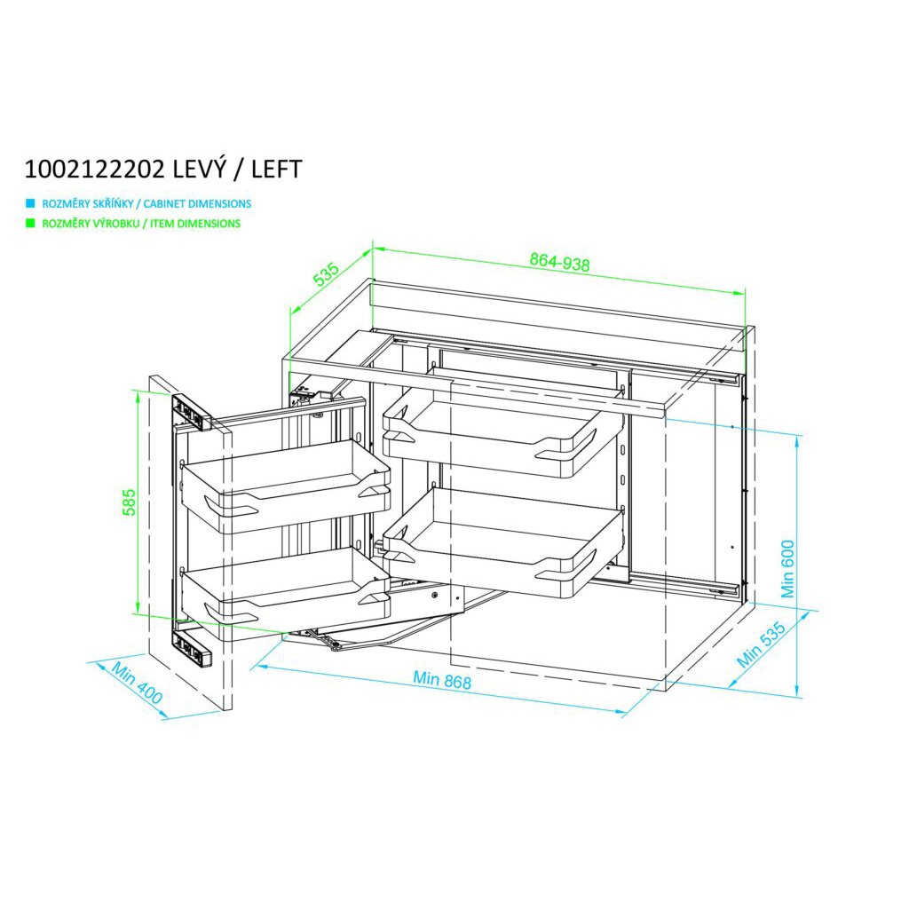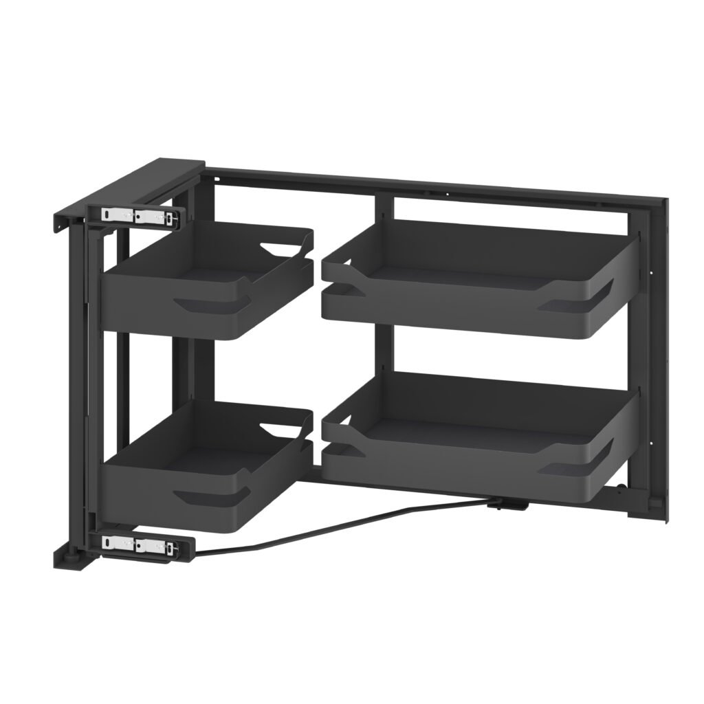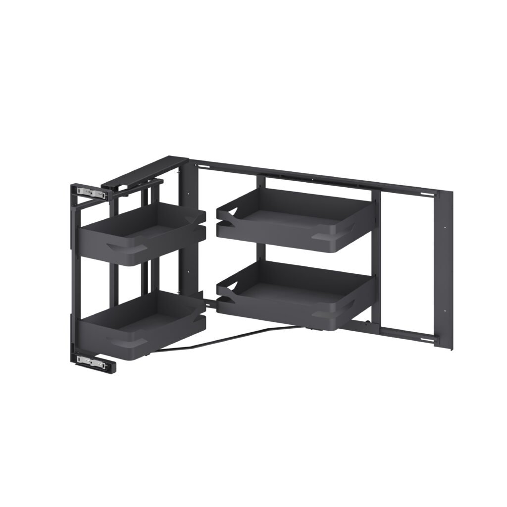 MagicCorner Style od značky Wireli predstavuje moderné, praktické a dizajnovo atraktívne riešenie pre využitie slepého rohu v kuchyni. Tento výsuvný systém s ľavým smerom výsuvu umožňuje pohodlný prístup do inak ťažko dostupného priestoru v rohových skrinkách.