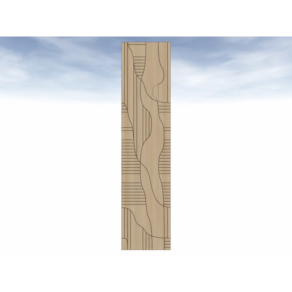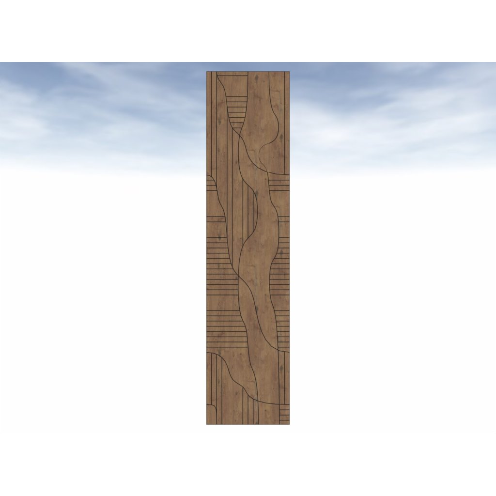 Panel F13 prináša do interiéru pohyb a harmóniu. Organické, vlnité línie v kombinácii s jemnými rytmickými frézovaniami vytvárajú pocit plynulosti a prirodzenej elegancie. Každý detail bol navrhnutý tak, aby stena nepôsobila len ako hranica priestoru, ale ako živý prvok dizajnu.